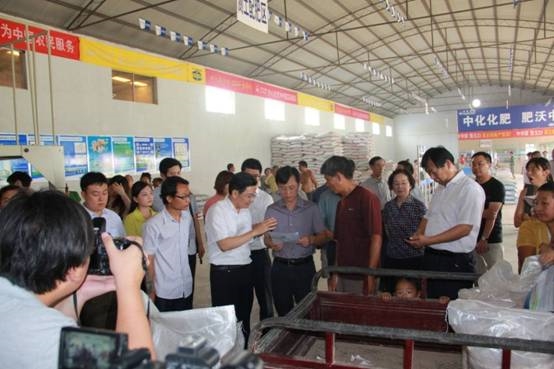中化化肥作為國家農業部測土配肥農企對接的重點企業,積極推動測土 配方活動。2012年,河南分公司成立中化化肥溫縣農業科技示范中心,引進先進的大型智能配肥機,形成個性配方生成、肥料配制、混合、包裝為一體的綜合配 肥工作站。通過為農民免費提供測土配方服務,輔助農化講座、集市宣傳、示范田建設等宣傳活動,使農戶認可并接受測土配方,解決配方肥下地的最后一公里問 題。活動的開展引起農業部高度重視,農業部種植管理司副司長胡元坤親自參觀考察示范中心,了解經營模式和測土配肥工作的開展情況。